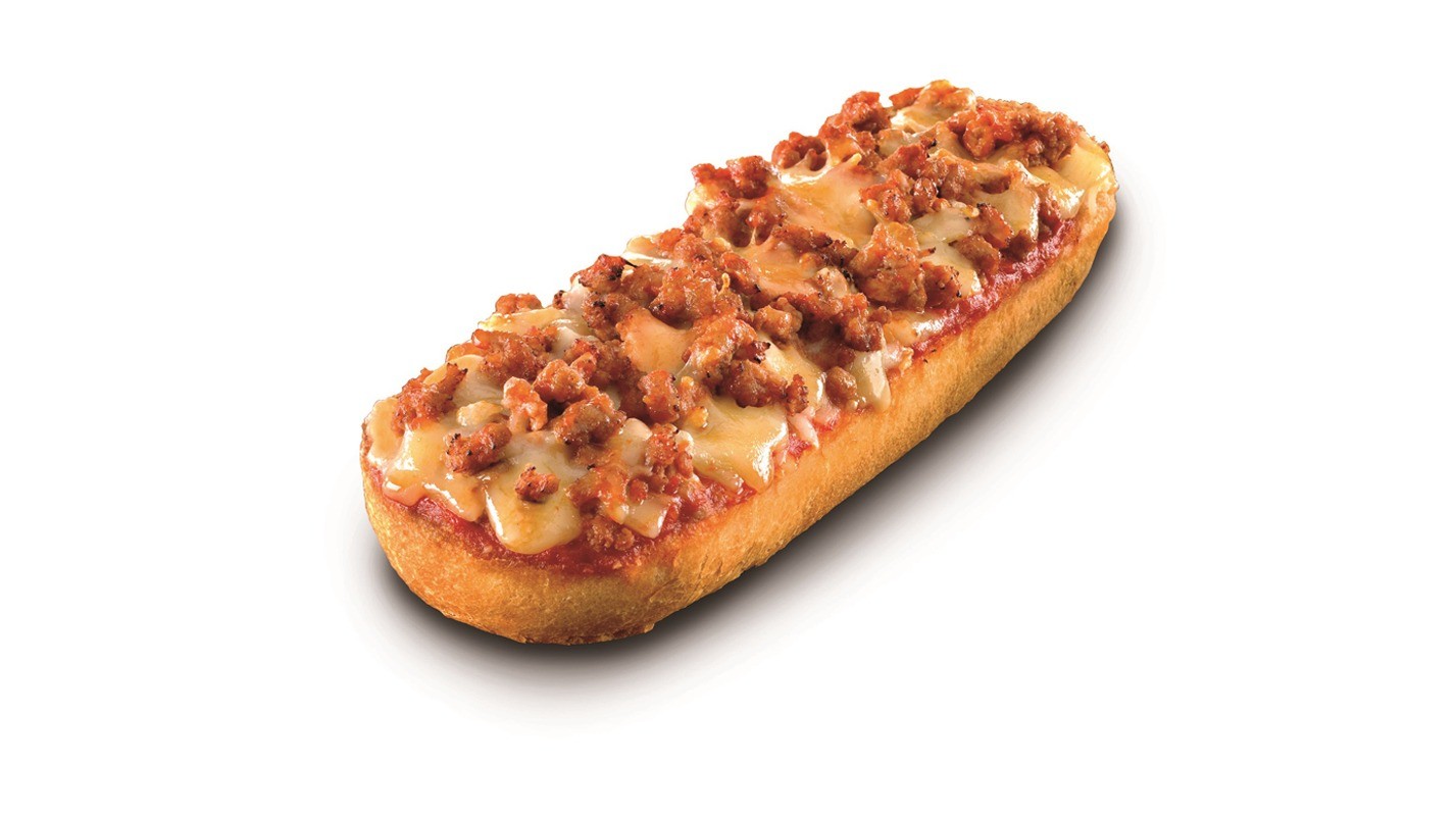 Baguette de carne de vacuno, queso Edam y salsa babacoa.